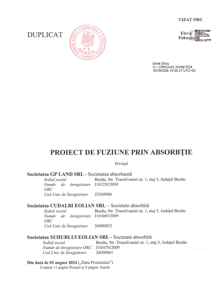 Cateva cuvinte despre Suhurlui EolianGP Land – Hotarare fuziuneCudalbi – Hotarare fuziune Suhurlui – Hotarare fuziune Cudalbi Eolian – Incheiere RegistratorGP Land – incheiere RegistratorSuhurlui – Incheiere RegistratorProiect vizat ORCCudalbi – declaratie pasivSuhurlui – declaratie pasiv